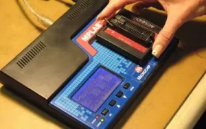 ИС сначала программируются партиями, а затем собираются на печатных платах с помощью специального программатора. Микросхемы вставляются в гнездо программатора, и программатор последовательно загружает код в каждую микросхему. Это позволяет осуществлять автоматизированное программирование в больших объемах.